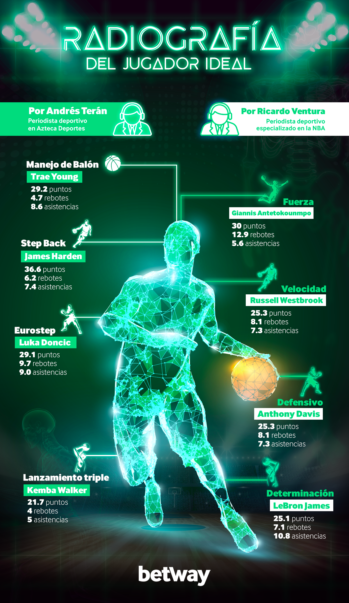 Además de este análisis que realizamos sobre las características que deberían tener los jugadores para ser parte del All Star Game de la NBA, también platicamos con Andrés Terán sobre quién sería el jugador más completo de la temporada: “La trayectoria en este caso respalda a LeBron James, quien mantiene números muy sólidos en diferentes departamentos año tras año. Pero en esta temporada creo que saca una ligera ventaja el esloveno Luka Doncic, quien tiene un balance de eficiencia mayor al de LeBron y se ha convertido en una máquina de triple-dobles”.