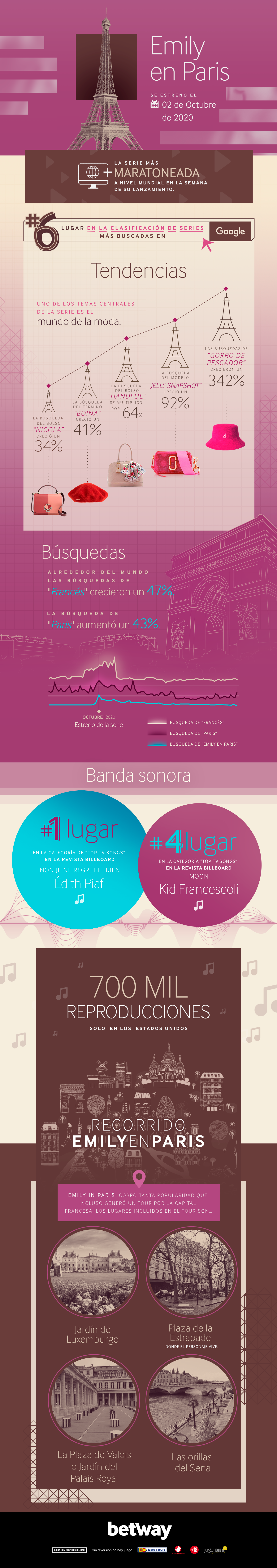 La serie, que cuenta la historia de Emily, protagonizada por Lily Collins, una joven ejecutiva de marketing que se traslada a una agencia de publicidad especializada en el competitivo y feroz mundo de la moda en París. La serie fue la más maratonada del mundo en la semana de su lanzamiento. Además de eso, influenció directamente la moda, el turismo y el consumo de determinadas piezas: