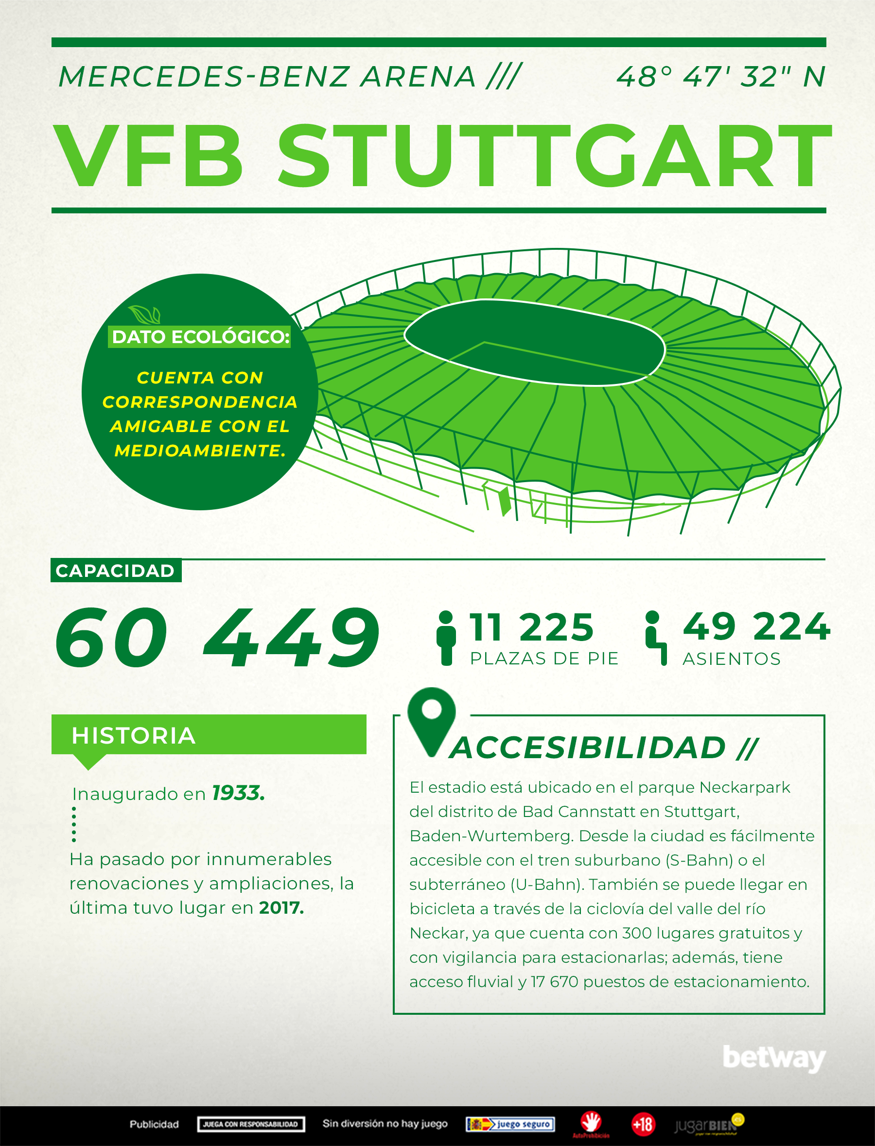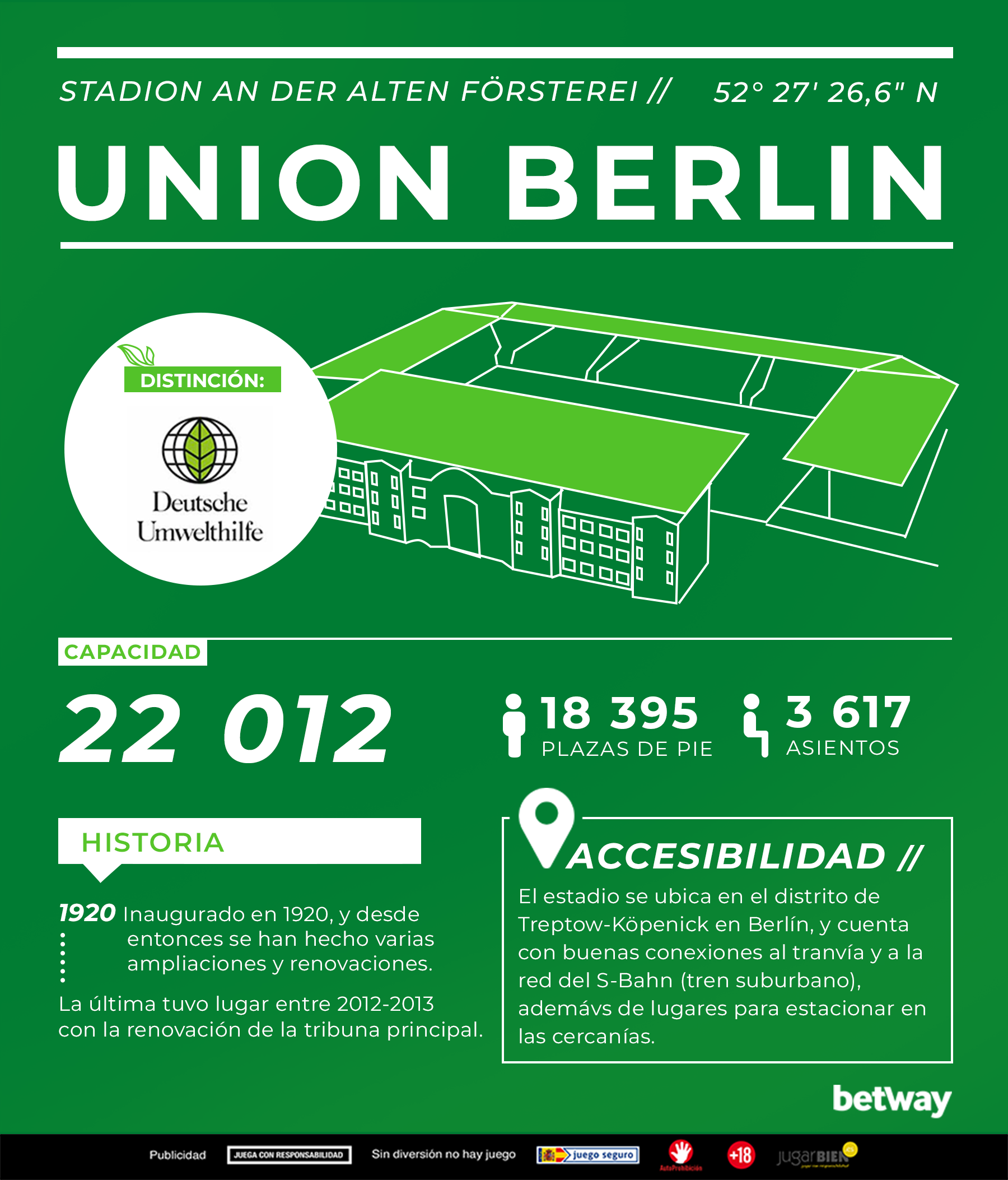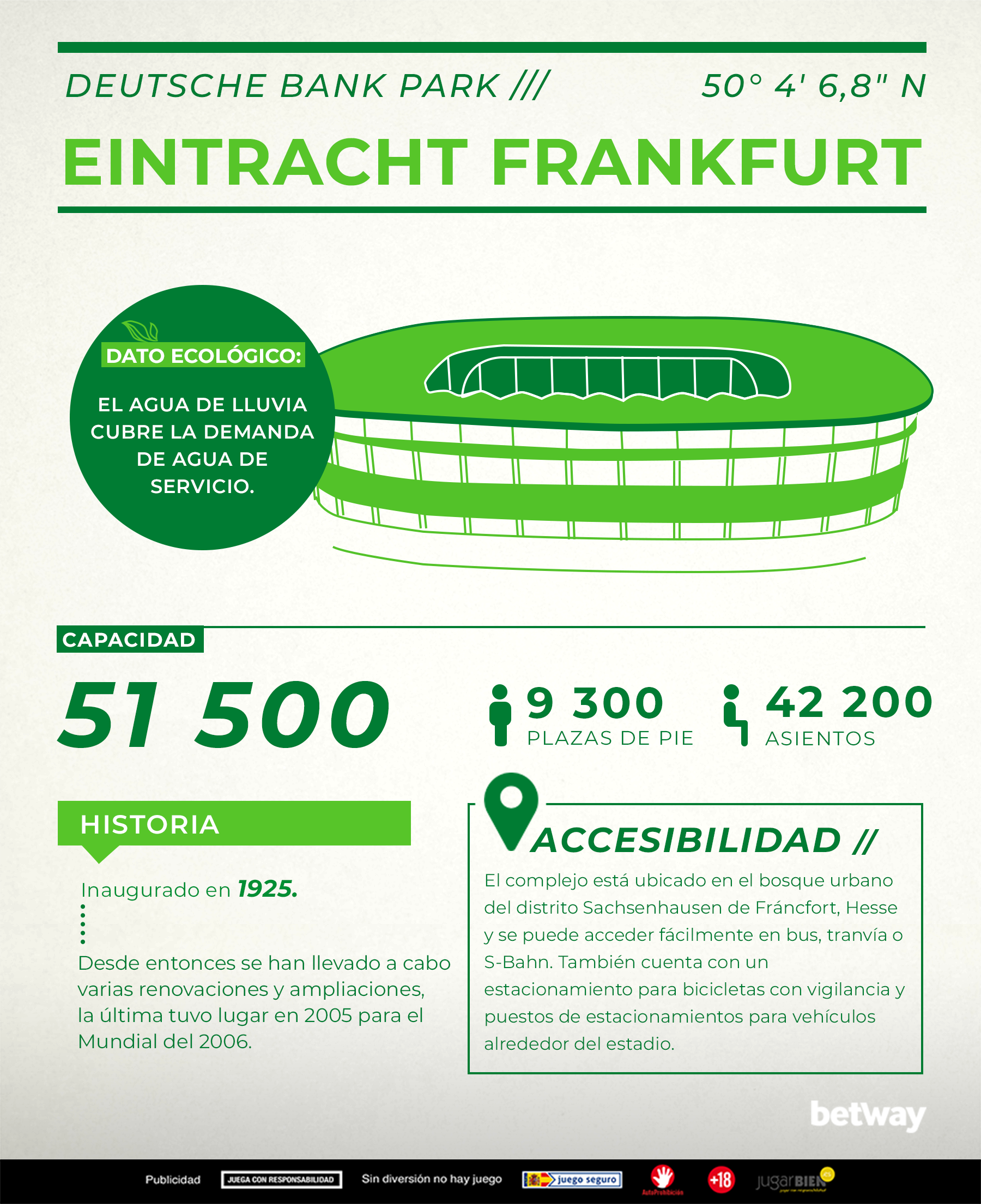 El tema del medioambiente y la ecología está en boca de todos; y todos hablan de la cantidad de residuos que se genera en un partido de fútbol de la Bundesliga y la energía que se despilfarra. ¿Será eso cierto? En Betway Apuestas Deportivas nos hemos dado a la tarea de indagar sobre el asunto: ¿qué tan sostenibles son los clubes y los estadios de la Bundesliga alemana? Acá te presentamos nuestro análisis ordenado de acuerdo al tamaño de los estadios.