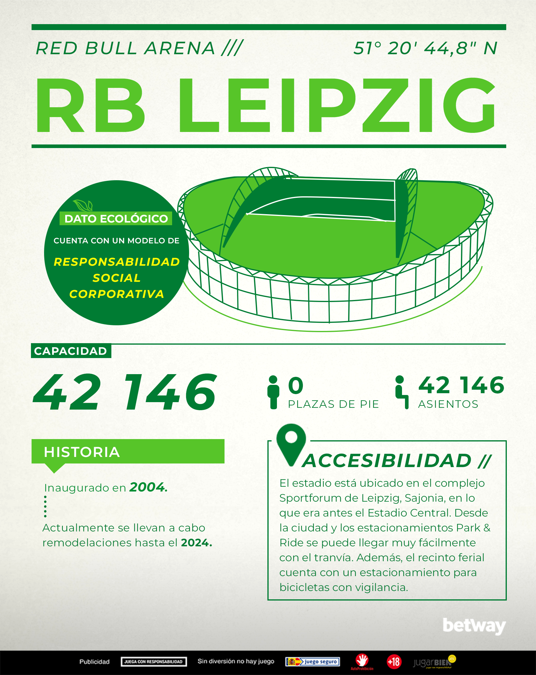 Actualmente se llevan a cabo numerosas renovaciones y se elabora una estrategia acerca de los temas de responsabilidad sobre el cambio climático y conciencia medioambiental, en el marco de la responsabilidad social corporativa. El RB Leipzig sumó un portal de ayuda a través del cual apoyan distintas iniciativas, como campañas de donación de sangre o de entrega de golosinas a niños en diferentes establecimientos.